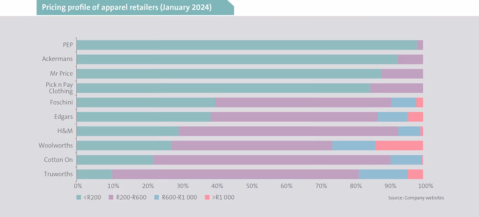Pepkor enjoys unrivalled sourcing power as the largest South African garment buyer and therefore procures items at significantly lower input prices than competitors - passing most of these savings on to customers, resulting in higher volumes sold. This virtuous cycle of low markups and high-volume sales has solidified Pepkor's position as the leading discounter in South Africa.