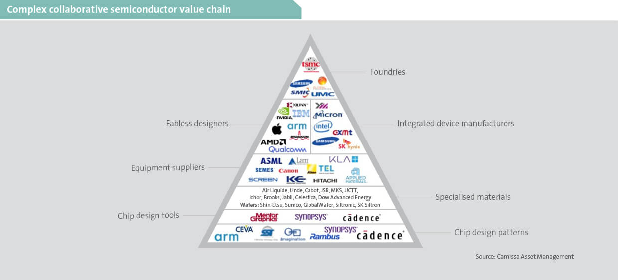 As illustrated below, the entire system depends on deep collaboration and expertise in niche areas, which creates large barriers to entry.