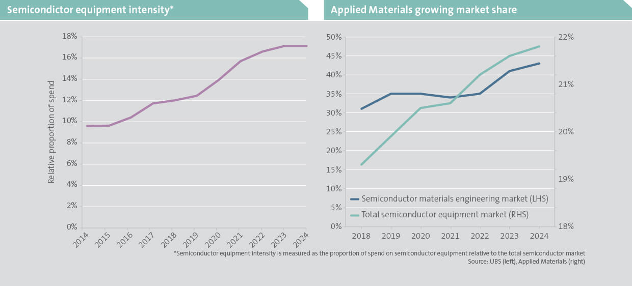 The more complex chipmaking becomes, the more highly specialised the equipment that is required. As a core enabler of cutting-edge semiconductor manufacturing, Applied Materials is strategically positioned to benefit from burgeoning demand. Additionally, it is a clear leader in materials engineering – an increasingly critical frontier in semiconductor manufacturing. With a growing market share in a structurally expanding industry, the growth outlook for the business is very promising.
